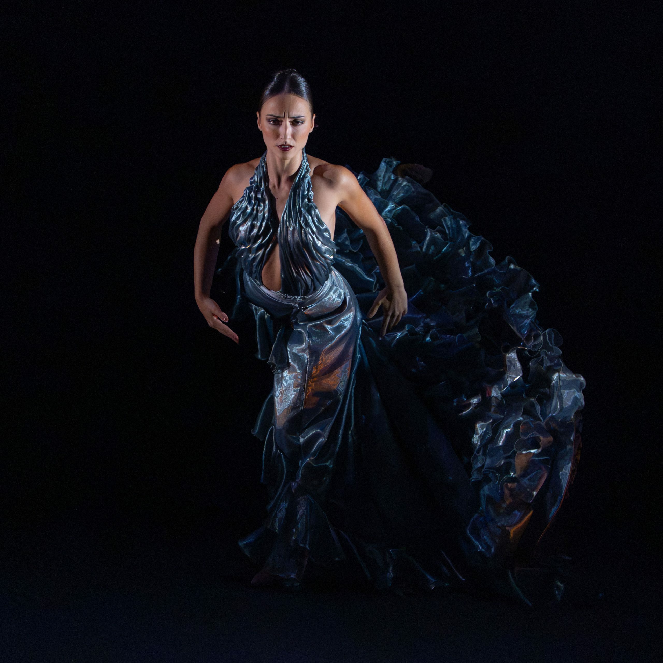 DANZAS SOLEMNES recorre diversos ambientes inspirados en la tradición española definidos por líneas técnico-estilísticas clásicas y académicas. Paisajes propios como puede ser la elegancia de Aranjuez, los Jardines de Sabatini y el Palacio Real de Madrid o el sur de España como racialidad de nuestro carácter. Es esta simbiosis de culturas, desde la máxima solemnidad hasta el más fuerte temperamento es lo que define a ‘Danzas solemnes’ y por consiguiente rasgos propios de nuestra identidad cultural.